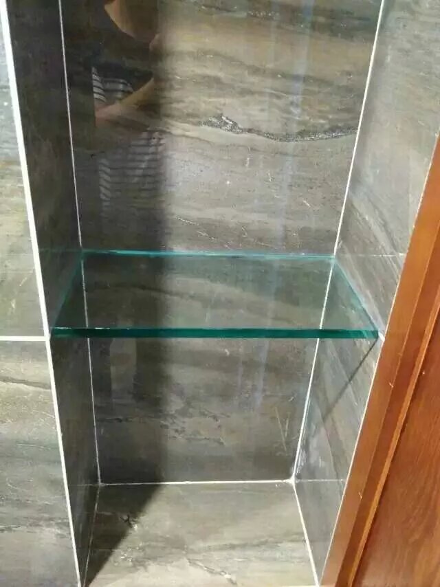 我们贴砖的鲜师傅细节棒棒哒,包管身边做一个瓷砖置物架放洗浴用品,玻璃几乎无缝嵌入,直接玻璃胶固定,稳固简单好打理。这必须贴砖是直角四边形才可以做到的。