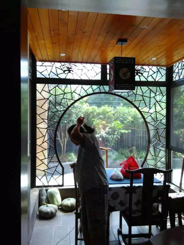 去年完成的青城山脚下的中式小墅,昨天和水电杨师傅去做个小售后。