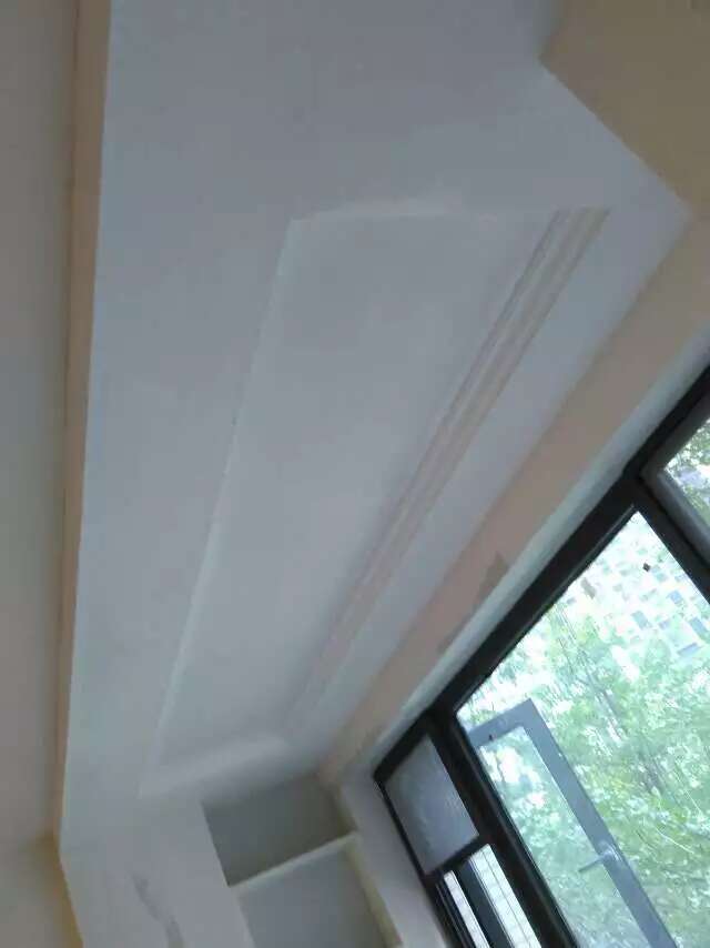 卧室石膏线阴角线安装了,但由于衣柜后期定制,所以要留着衣柜这块,等衣柜安装后再在上面封板上安装,而且要给衣柜定制设计师提前说明,不然衣柜门板到顶就断开了影响效果。