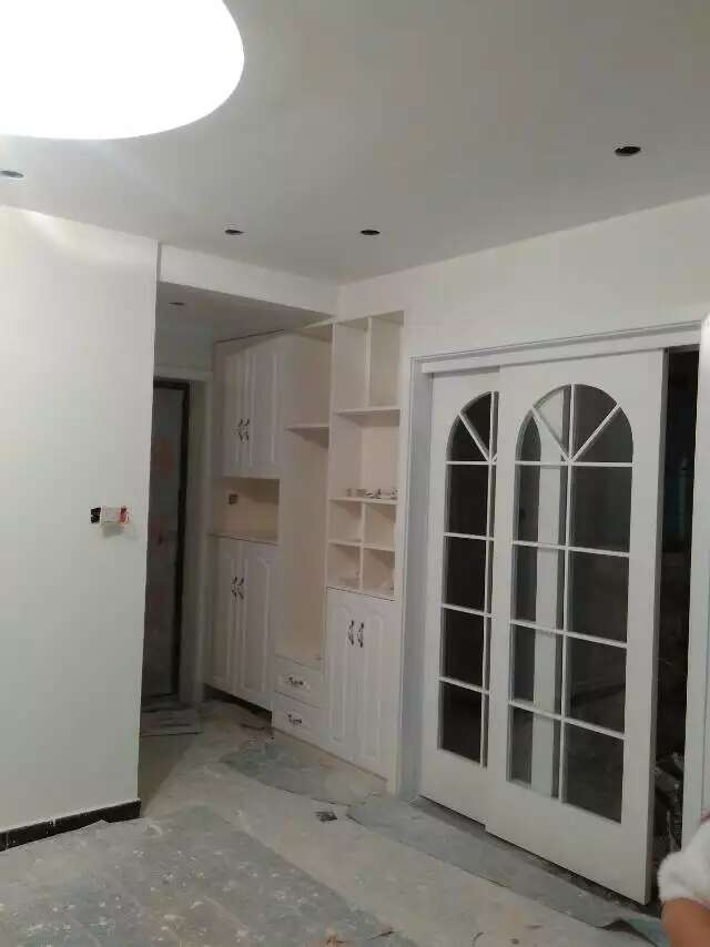 前段时间成都阴雨天多,而且是二楼通风效果差些,加之节假日某些时间不能施工,小曾家的墙面基层就慢些。前几天安装好了套装门,昨天漆工罗师傅在做墙面面漆了。面漆滚图完就剩下几天安装收尾了。