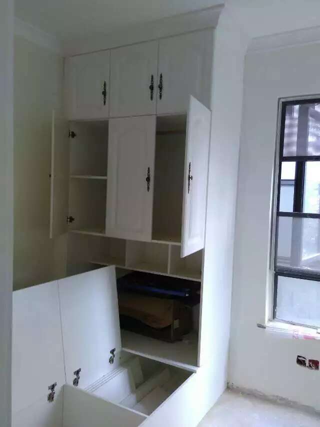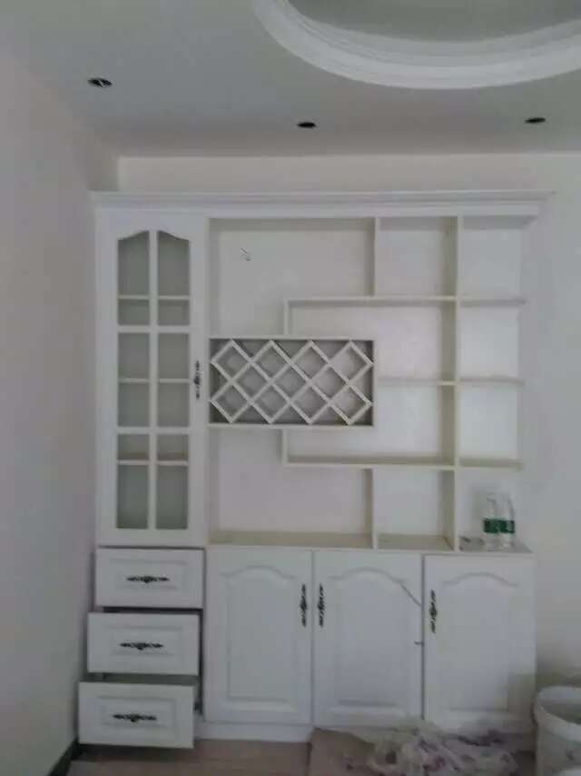 定制的衣柜、酒柜和榻榻米安装好了。工厂化是趋势,一直我们给业主建议定制衣柜。因为相对于现场制作性价比更高。由于提前合理安排和规划,提醒。小曾家的衣柜和我们现场的石膏线,以及墙体还是很契合的,略略的小缝一般别家是不会补的。但我们这里补这个缝是我们认为应有的工作。而且还要补好,不是填平缝就是,而是把附近墙面一块找平。现在是不是基本无缝了吧!