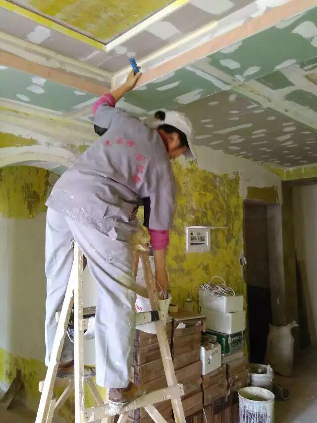 更多介绍这个户型和同小区小曾家的一模一样,只是方向镜像反向的, 木工是敬先生从巴中带来的师傅施工的,前几天做完了,漆工罗师傅夫妇开始进场装修,滚涂界面剂的墙开始线槽,和吊顶造型的贴缝处理,防止以后开裂。 我们因为节省了很多和装修无关的费用。更多的经费都落实在直接做工的师傅和材料上,而且师傅们一旦手艺好,经过考核加入我们队伍,是长期合作的,所以都会按我们约定的工艺和质量要求施工,当然一旦有不诚信的行为。我们发现了的话,对他们是很不利的,暂停施工安排甚至终止合作。所以从经济最大化的角度考虑,就是实实在在按要求施工。