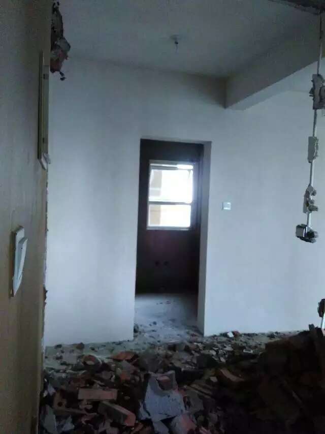 打拆的梁师傅夫妇今天开始铲墙和打墙了。