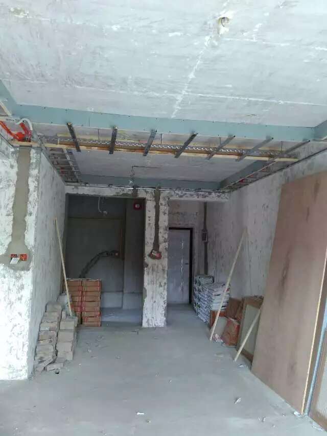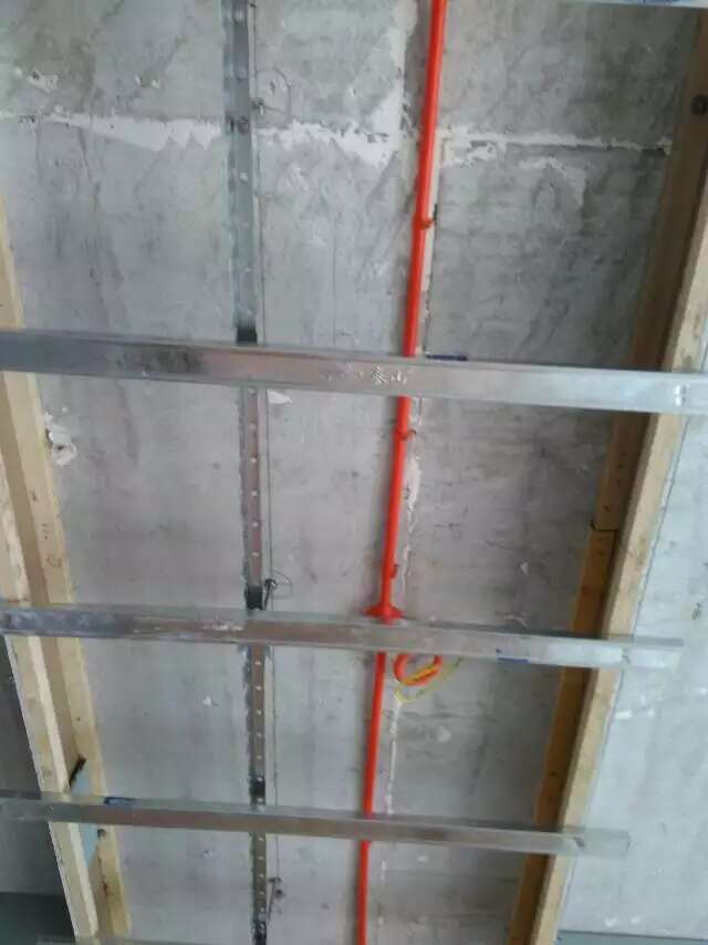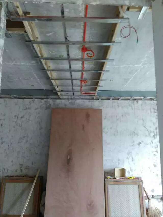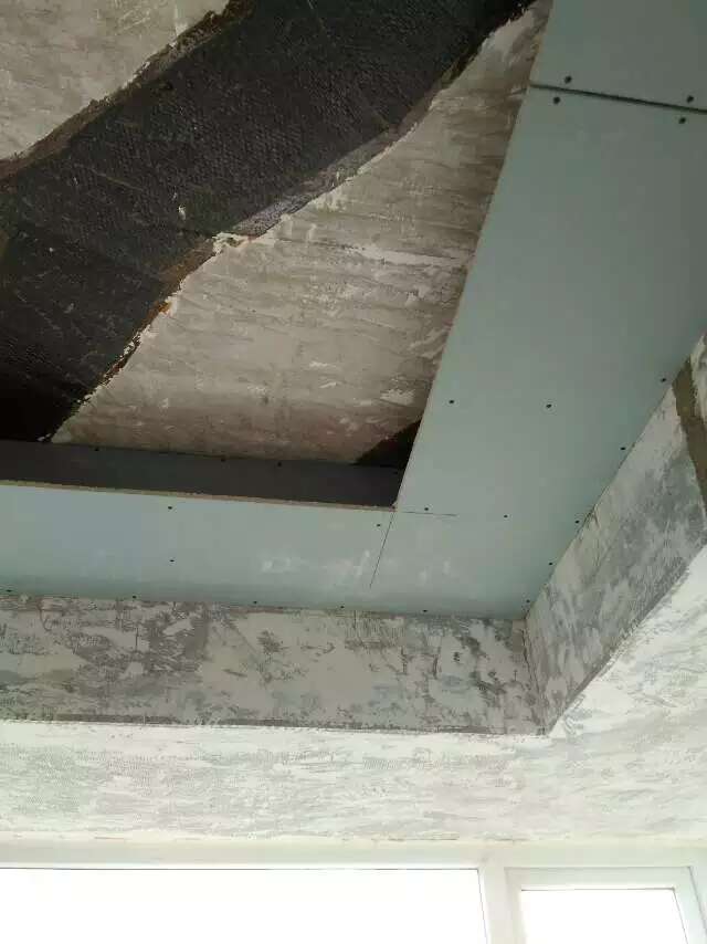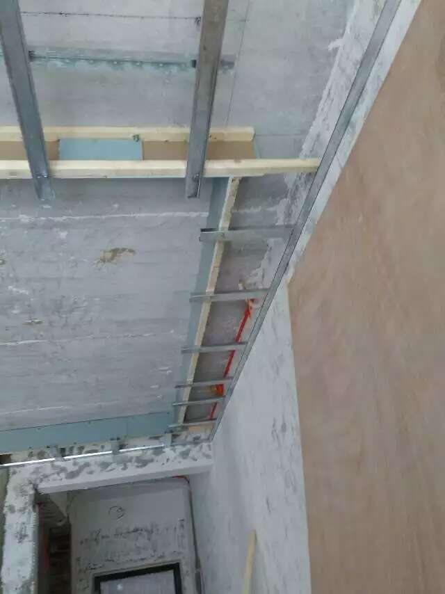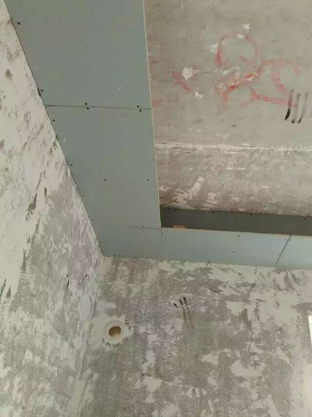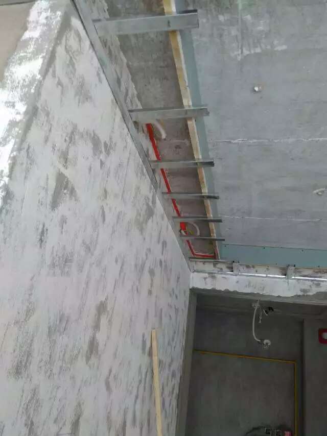 照片中有我们曾提到的吊顶转角处理细节。转角位置石膏板开成7字型防止开裂。