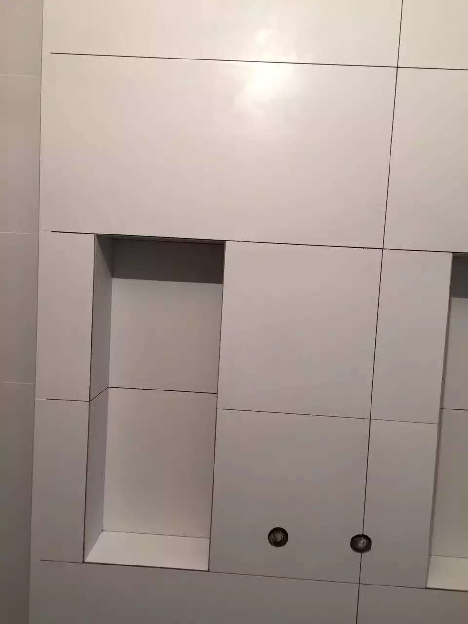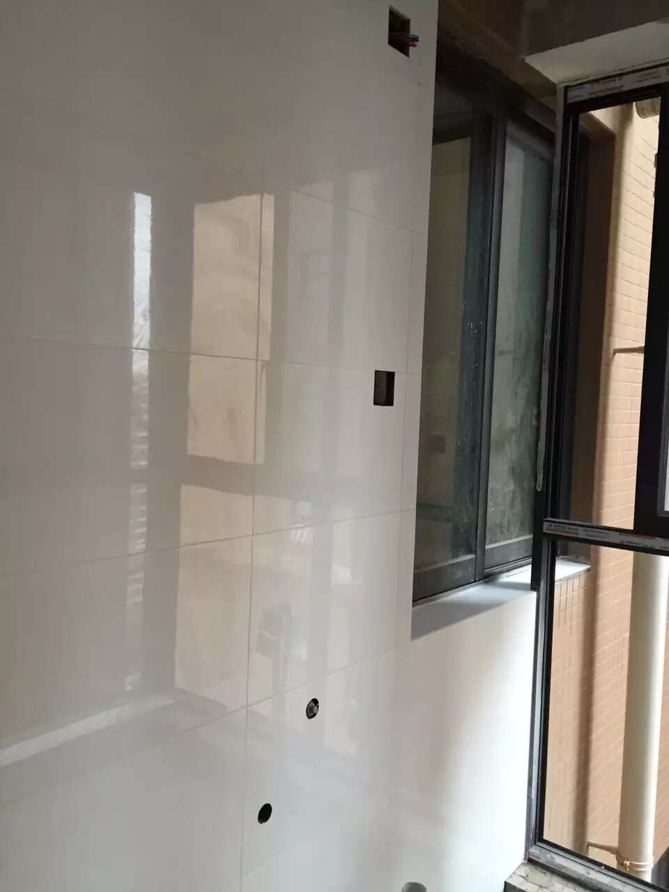 罗师傅用红外线在贴砖前提前测量墙面垂直度情况,防患于未然,防止埋头贴砖到边上因为墙面倾斜太多,墙砖无法收口的情况