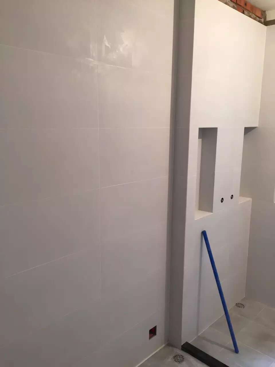 更多介绍何先生家基本色调是黑白灰加点自然温馨的原木色。墙地砖非常的素净,白色的墙,水泥色的浅灰和深灰。罗师傅已经铺贴完,看上非常的舒服整洁。图片中淋浴隔断挡水石材按默认施工标准预埋,还有次卫生间淋浴区按设计师图纸增厚做置物壁龛。这个看似简单,实则要做好挺需要砖工师傅技术的。