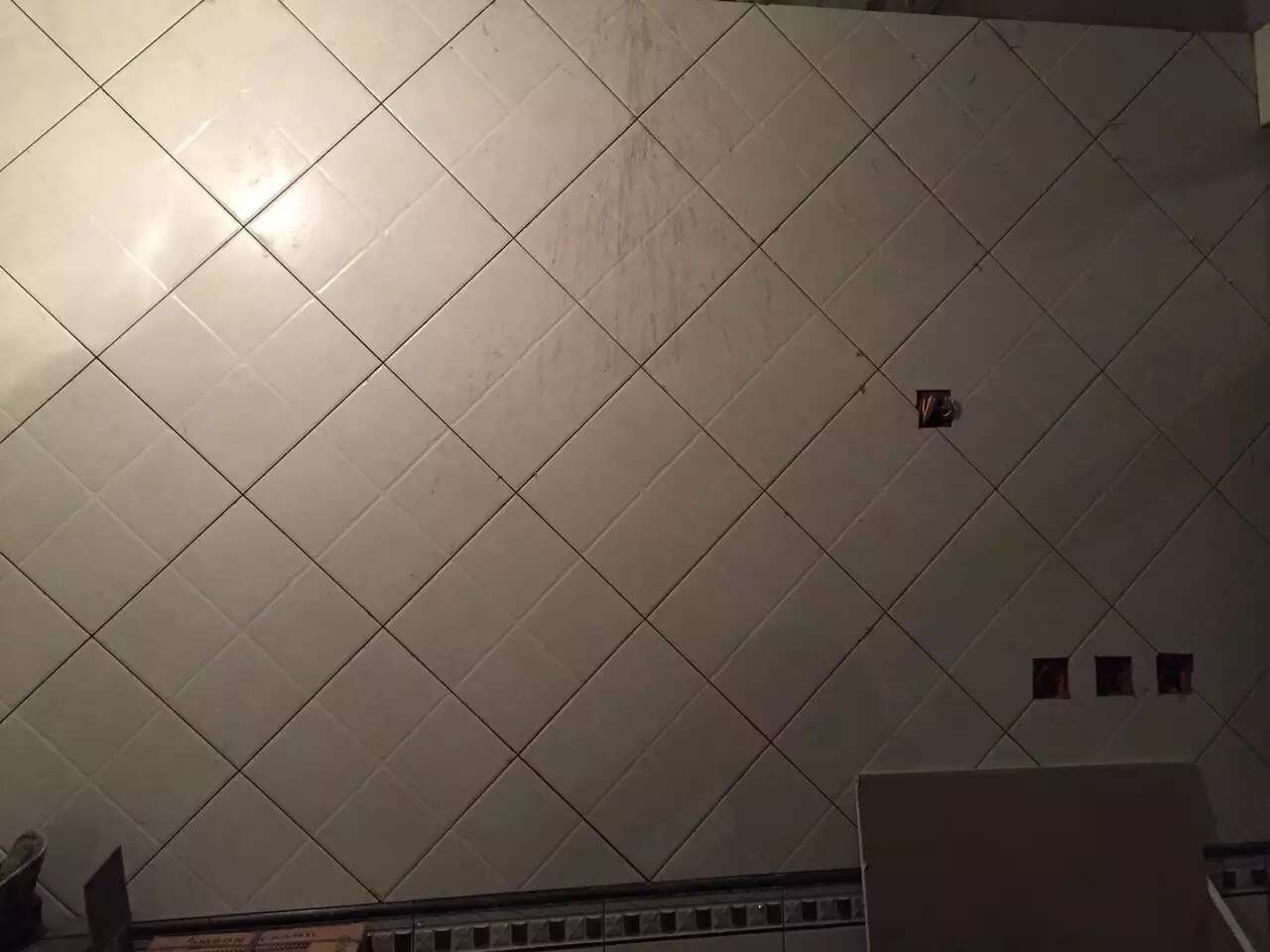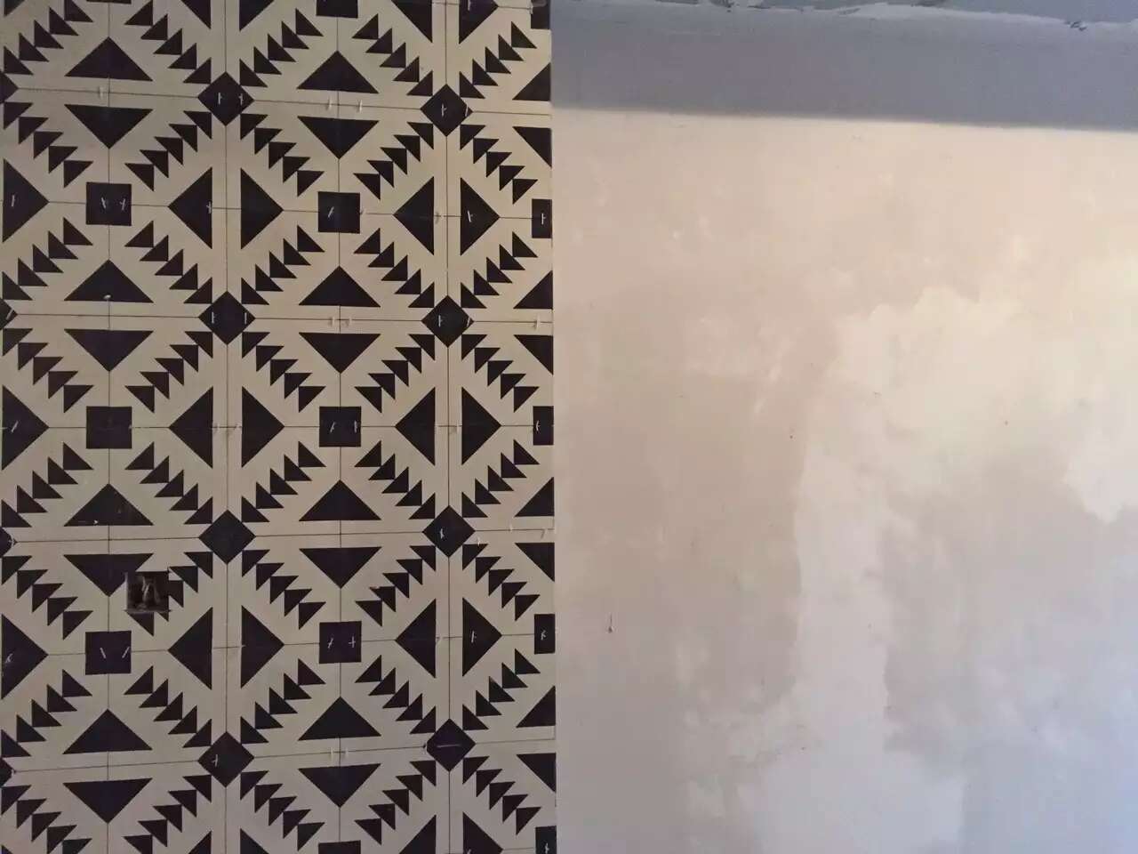 墙地砖已铺贴完大部分。厨房墙砖业主冯姐采用腰线下面正贴,上部分菱贴方式。