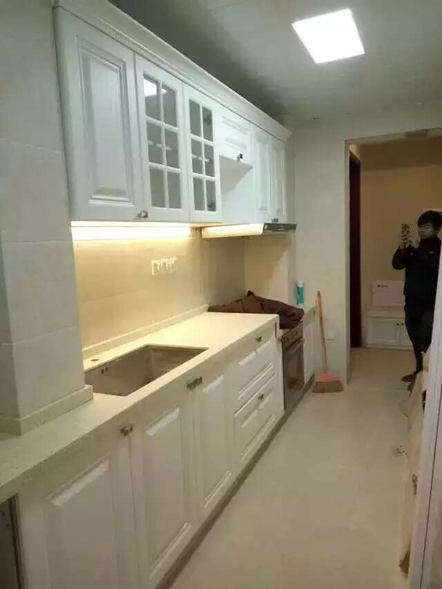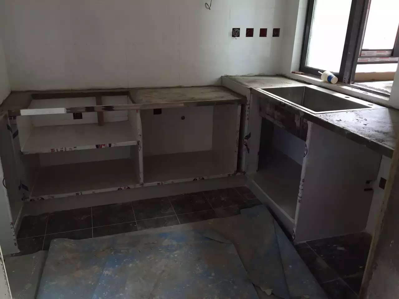 我们专业做瓷砖橱柜的邹师傅已经完成橱柜和综合柜的基层制作了,待安装台面和门板。