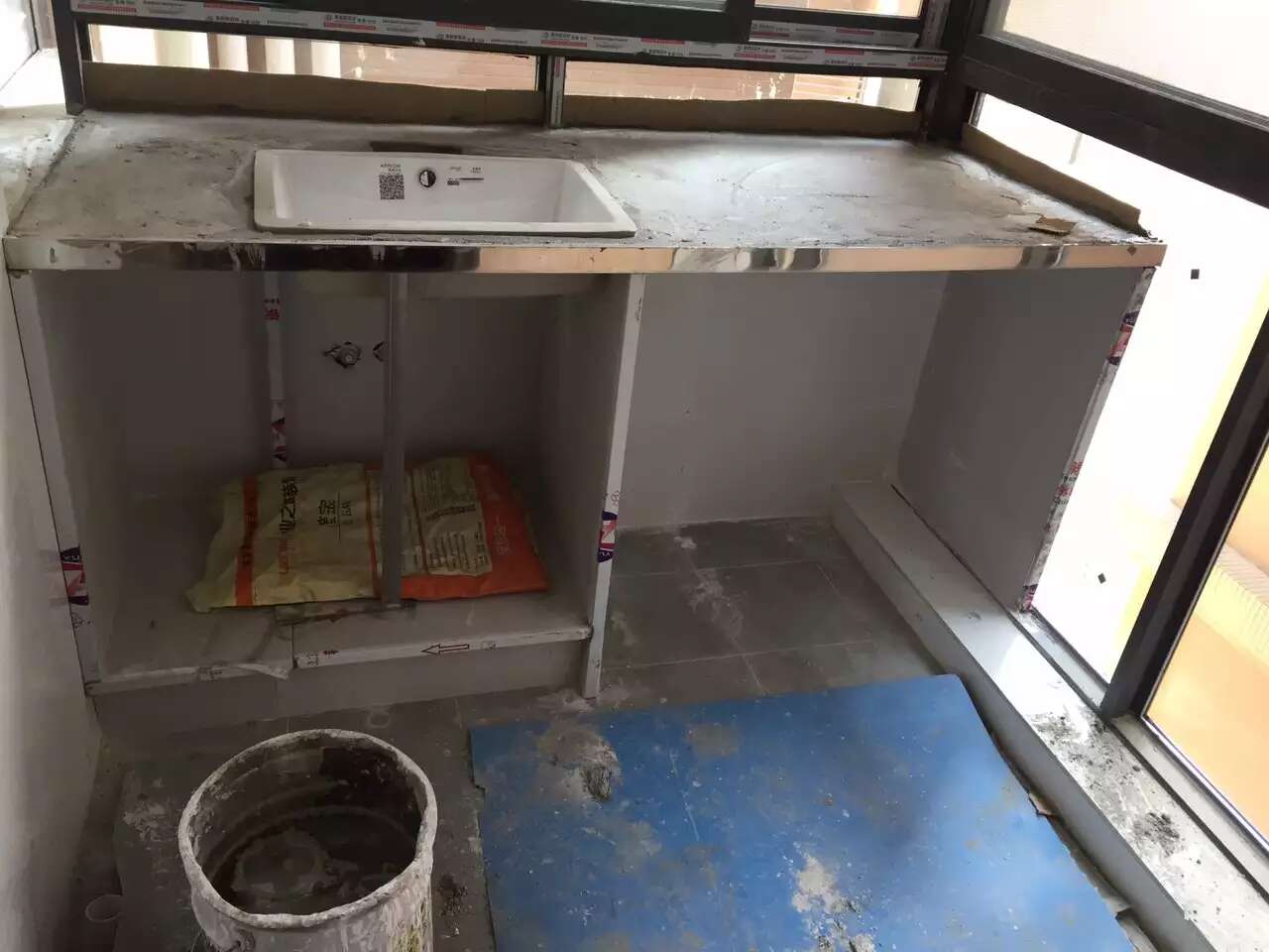 更多介绍矮矬穷,看上一副屌丝样。这是现在我们制作的瓷砖橱柜和阳台的洗衣机,洗手盆综合台的基层的样子。可是屌丝也可以逆袭。过上些日子就会变成高富帅,而且有内涵的高富帅,环保没味,对水百毒不侵。这里上两张前段时间刚完成的瓷砖柜体成品。