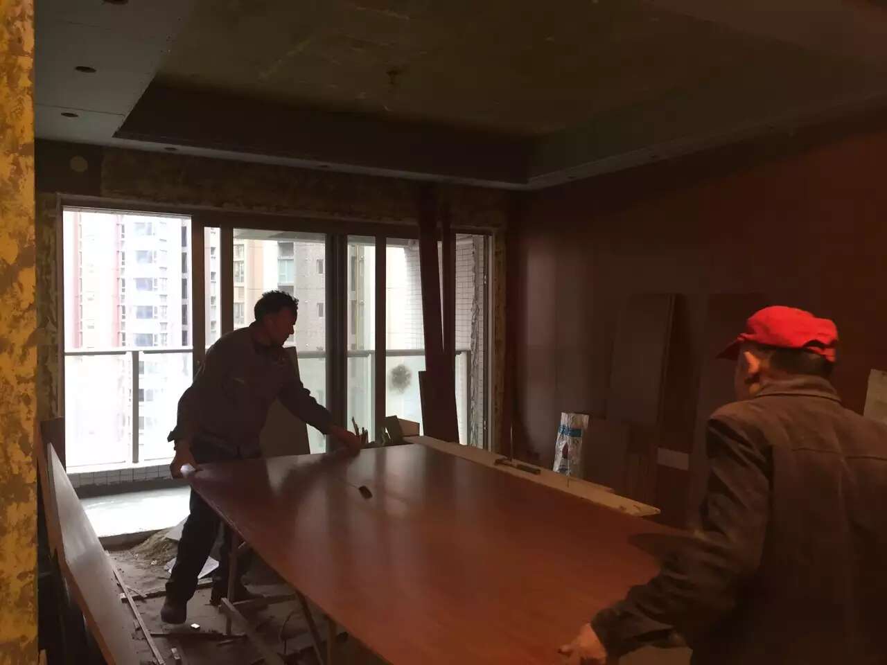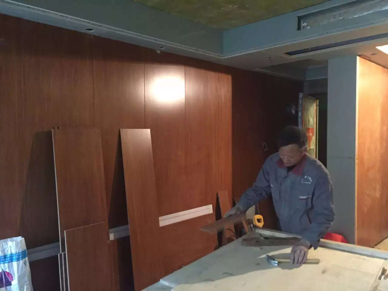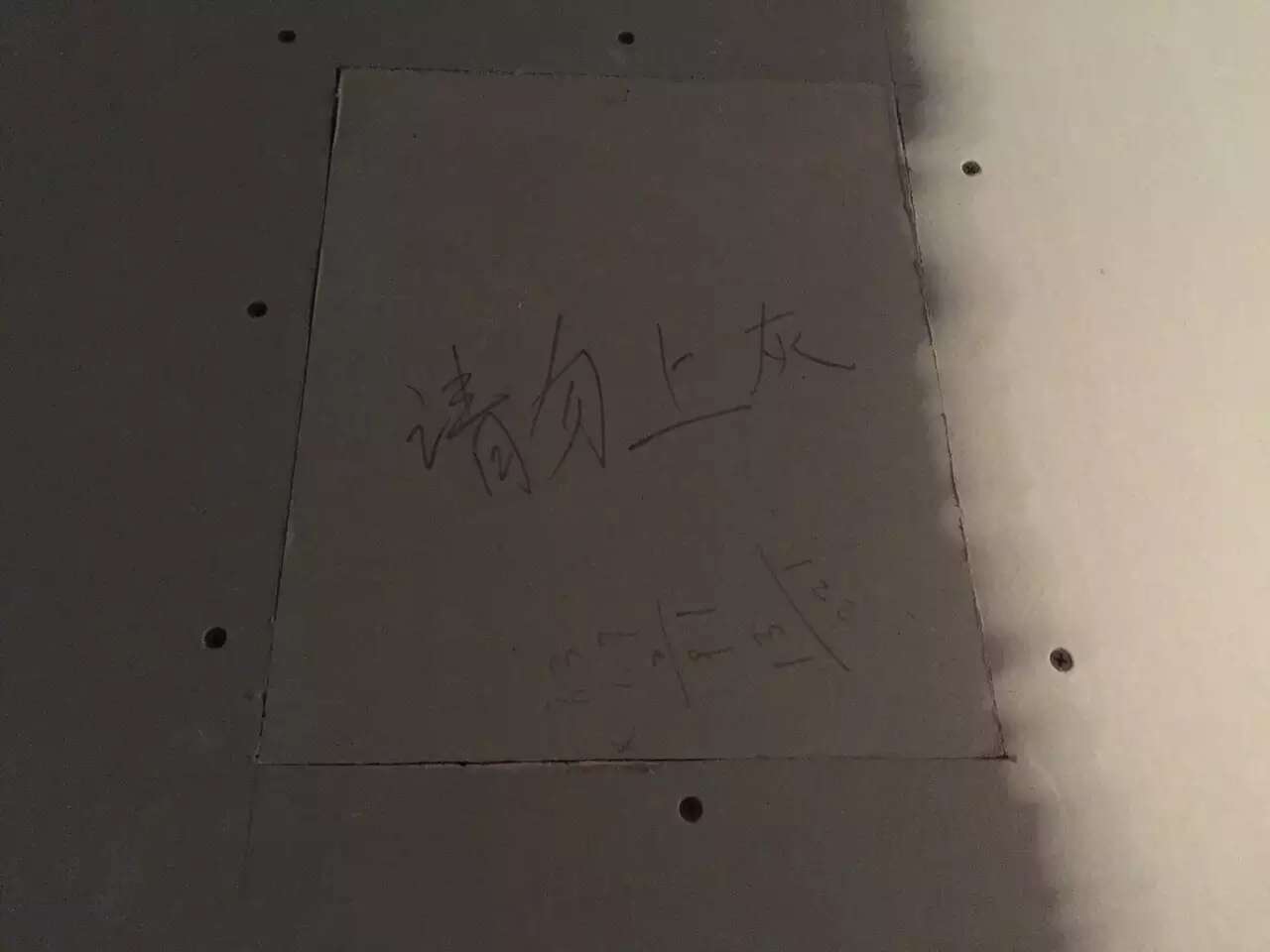 参观了小耿家我们制作的暗藏滑门成品效果,杨姐家也在两个卫生间做了暗藏滑门。南城都汇绝大部分户型都适用这样处理。由于基层厚度和宽度位置条件有限。这里是我们原创想出的非常规办法,几乎可以确定在这小区是独一无二的。暗藏滑门需要安装门时打开临时盖板,拧轨道螺丝和限位器。之后漆工再在盖板上补刮石膏腻子,隐掉临时盖板。木工张师傅父子担心漆工不知情在门安装前就在临时盖板刮灰遮住螺丝帽,以后安装人员无法操作,特地贴心的写明注意事项。