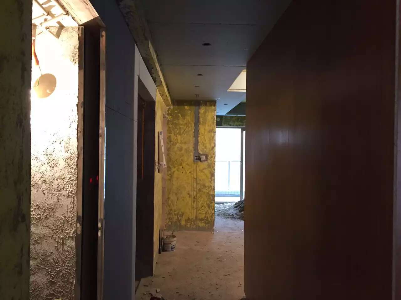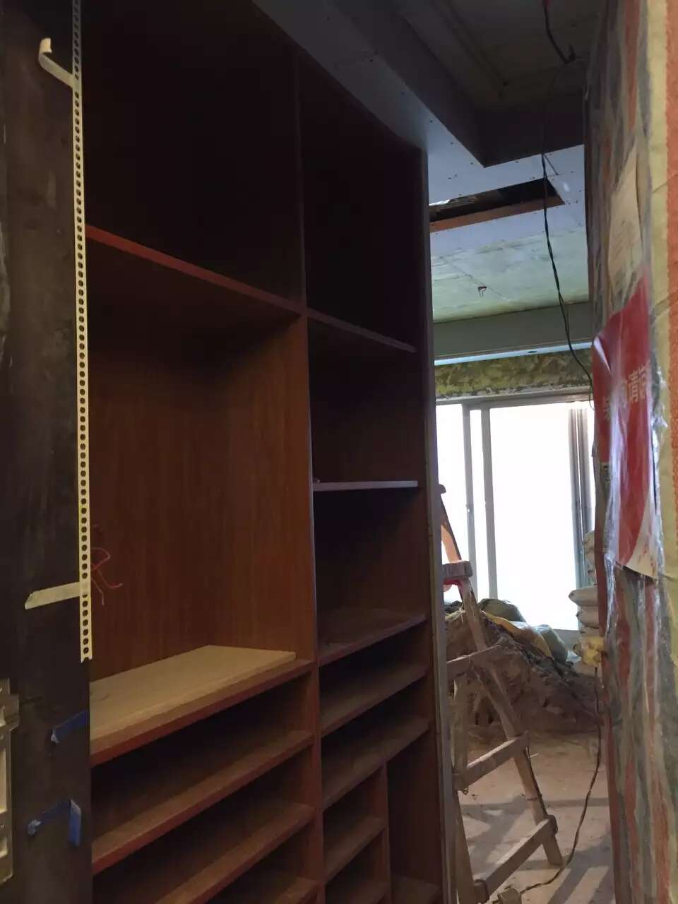 然后思考和窗台侧墙相关联的处理方式。最后想到窗台侧墙可以深色软包解决,这样一是符合飘窗台座看云卷云舒的舒适意境,软包又可以补平旁边饰面墙留的高低缺口和视觉上的缺口。木工张师傅已经为这一小块软包做好基层。不过因用同样板材,现在看上去没有区分开。只有待安装软包后才看的出来。
