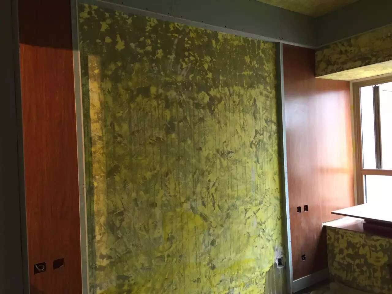 看似简单的成品板上墙,其实要考虑蛮多,成品板就不能像通常的基材上可以到处枪钉固定,必须考虑对缝,固定和后续的遮蔽才能达到需要的效果。