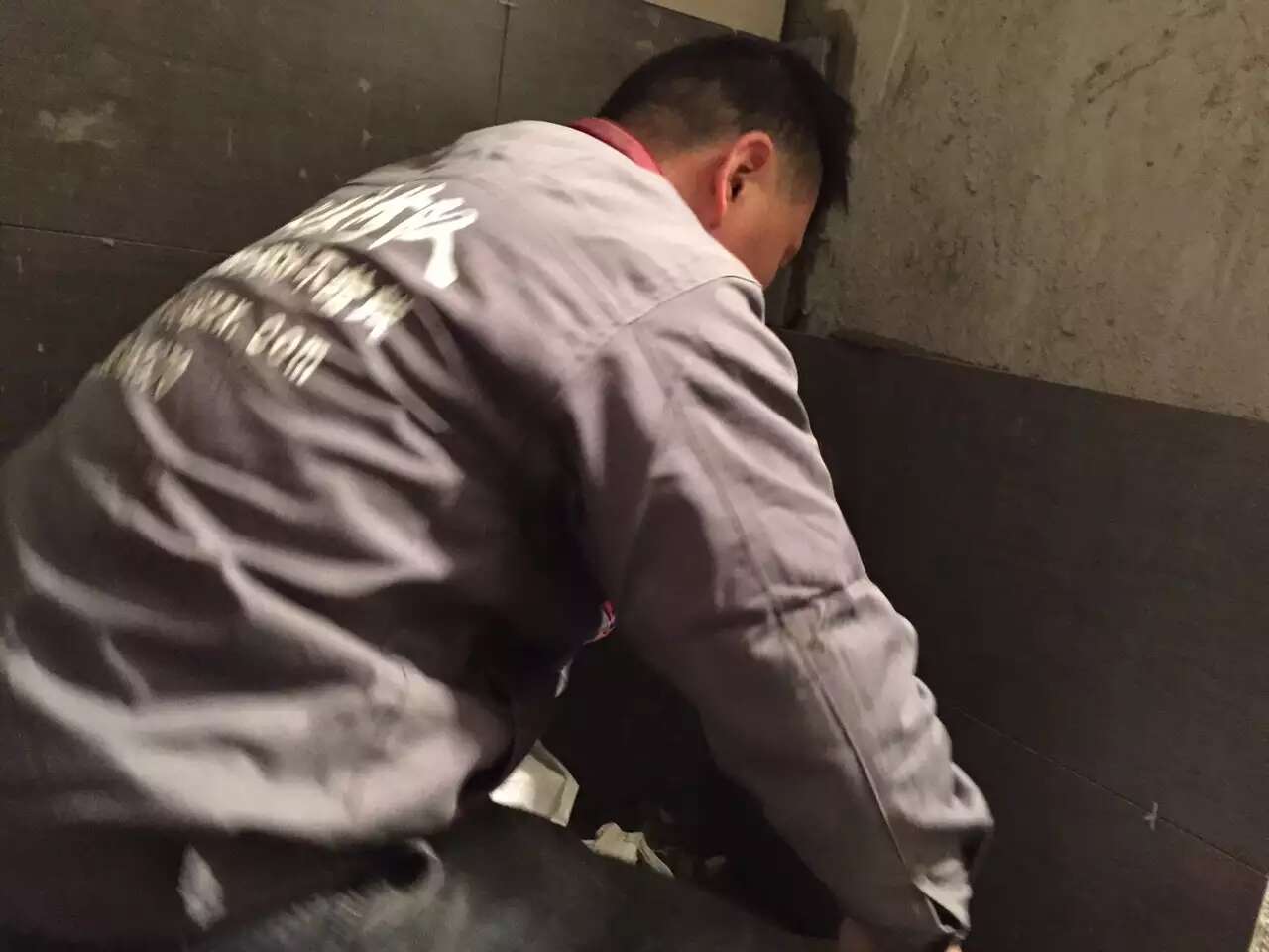 木工张师傅完成全部现场木作,打理干净现场撤场了。泥工张师傅继续贴砖。杨姐的砖质地好,素净的上下色。