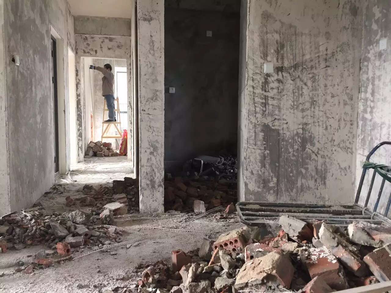 更多介绍唐先生家今日开工,打拆梁师傅夫妇开始打墙,铲墙。