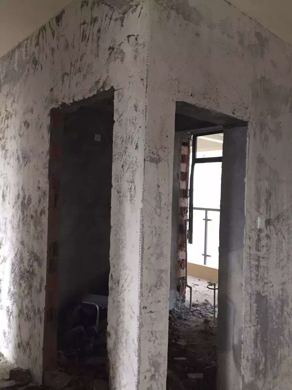 厨房因布置合理新开了一个门洞,门洞和以前门洞以后会一样高,但为什么现在看上去要高出10多厘米呢?这是我们对师傅的要求,对于这种90厘米以内宽度的门洞,一般装修都是打出洞口就安装门了,看上去没什么问题,不过从建筑标准来说,门框上方应该有一个叫过梁的预制混凝土梁跨在上面才能更稳固。我们打高的这10多厘米就是预留了这个位置的,我这里专门选了一个角度可以看的很明显。别看小事一桩,可能你在小区看别家开门洞却不是这样的,绝大部分是一样高不做处理。
