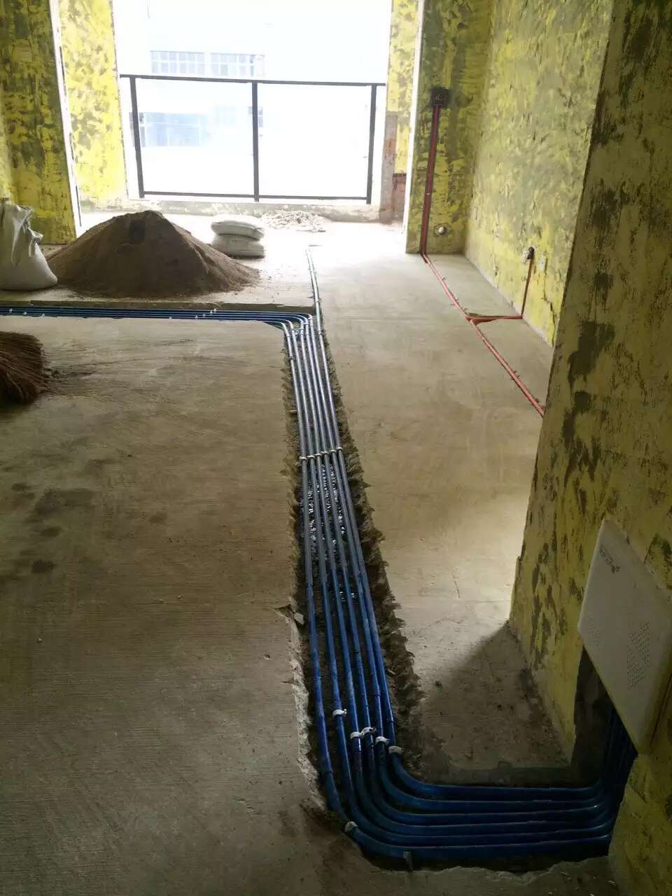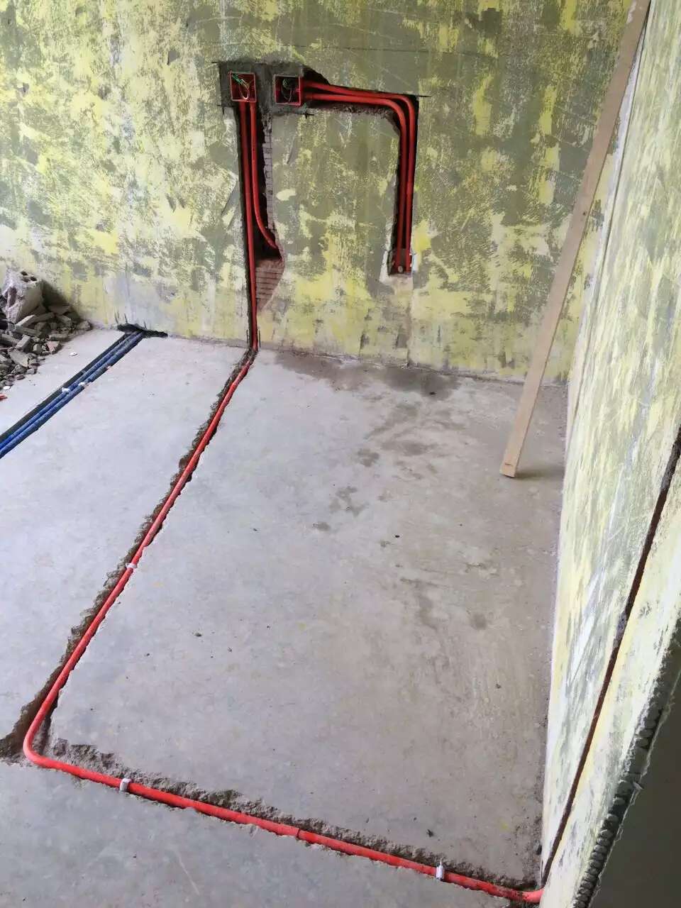 开工10天左右的小邱家打拆,水电完成,昨天泥工杨师傅开始补烂包管,卫生间回填等工作。