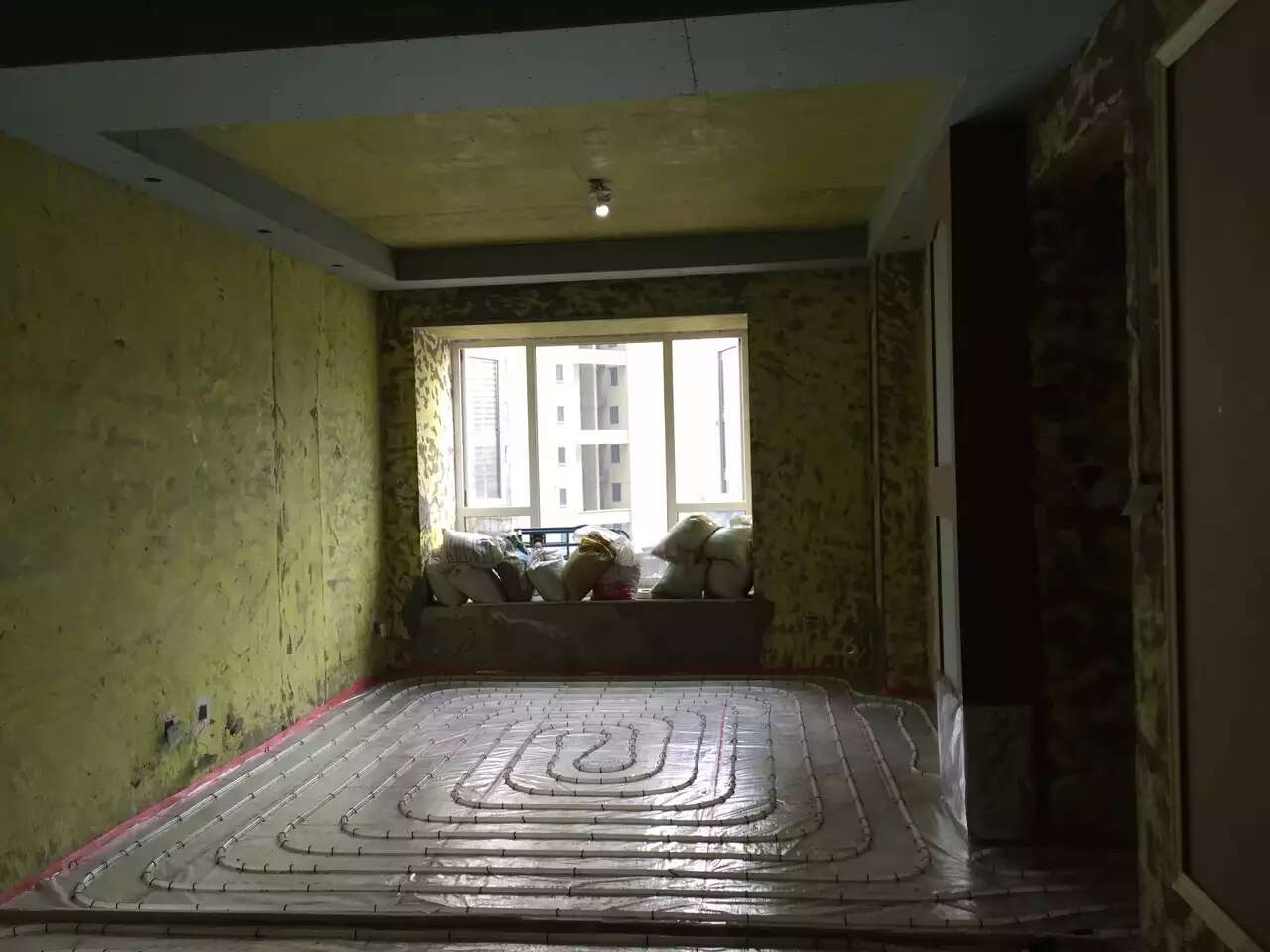 小陈家使用地暖,厂商已经铺完管即将找平。