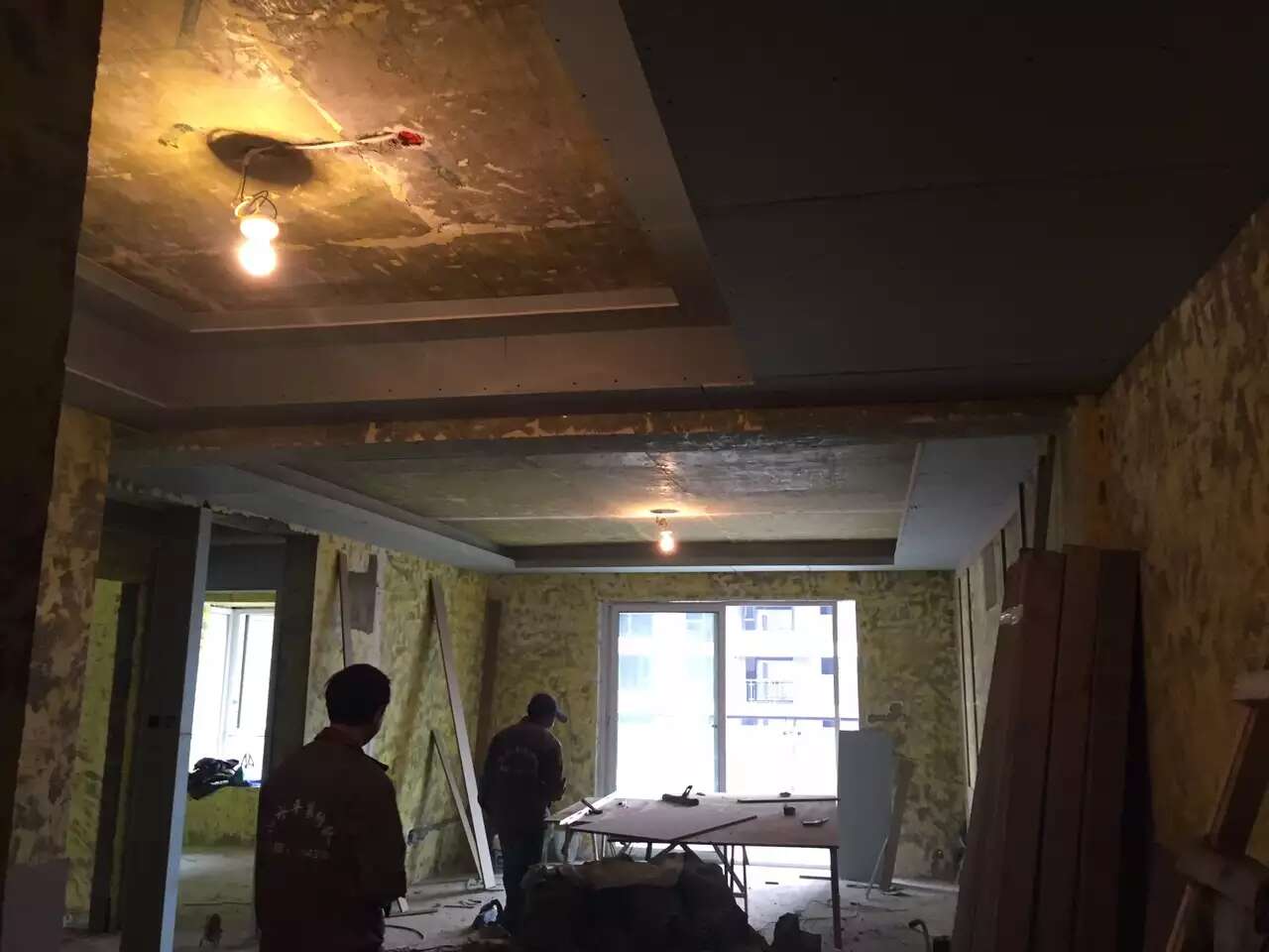 颐和京都三期罗老家,继续强调,吊顶石膏板要开L型防开裂,木工罗师傅按我们施工标准做好了吊顶。