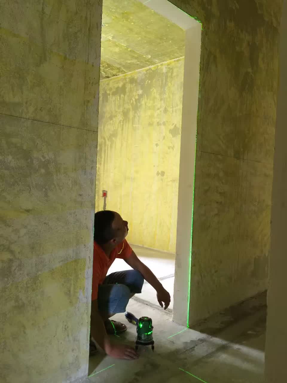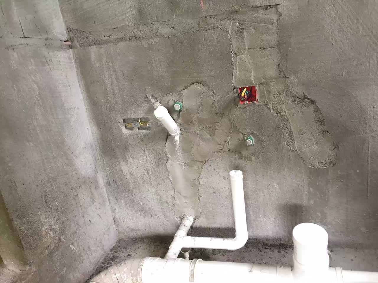 木工张武正提前检验门框是否正,如果相差太大将提前处理,防止套装门安装后周边缝隙太大。最后一张是水电张红亮按业主要求做的洗面盆的墙面下水。通常下水是在地面的,如果悬空洗面盆下面放置盆之类物品有些不方便。这样改成墙面下水后下面就可以完全空出来,墙面下水的缺点是增加了转角,万一堵住了不好疏通。