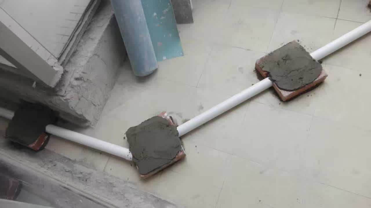 下水管是有坡度的,通常不是贴着地面,如果上面回填,可能压坏管道,杨师傅做好下水管每隔一段按我们工艺要求垫支保护。