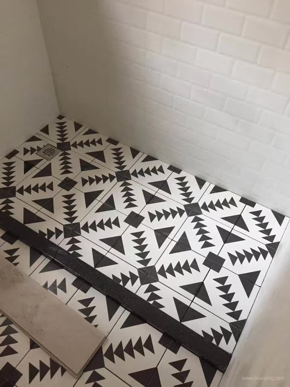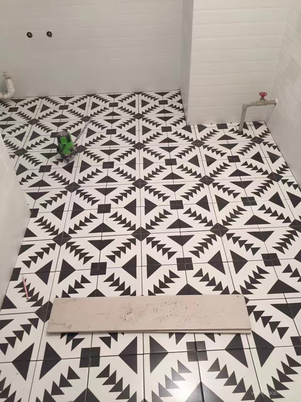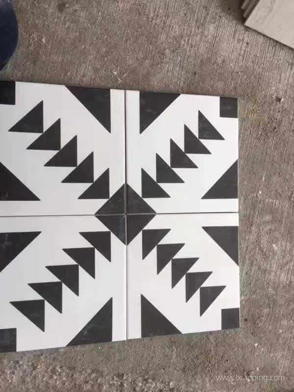 黑白几何图案和浅色木纹地砖