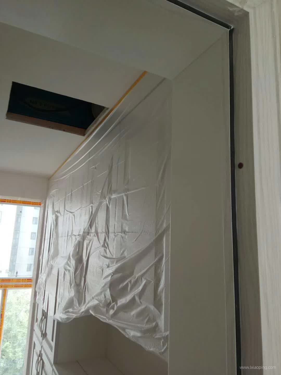 万卷山漆工李贵洪师傅保护成品,即将滚涂墙面乳胶漆。