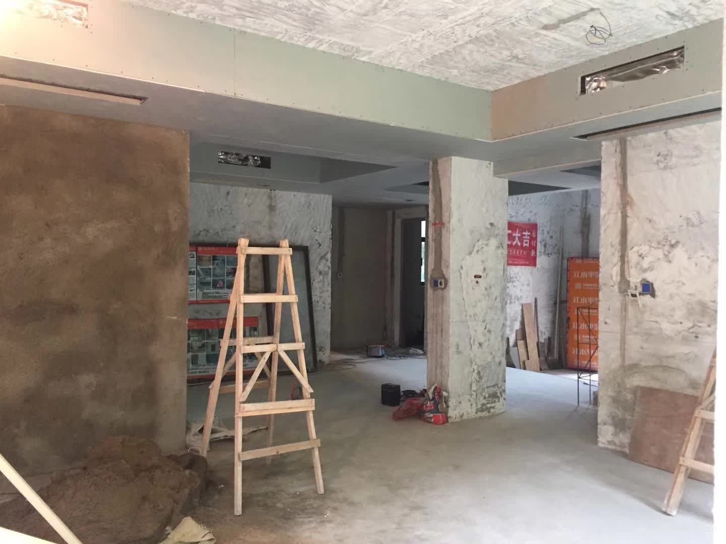 龙湖长桥郡别墅木工鲜永志师傅吊顶结束,接下来陈师傅铺贴工作开始