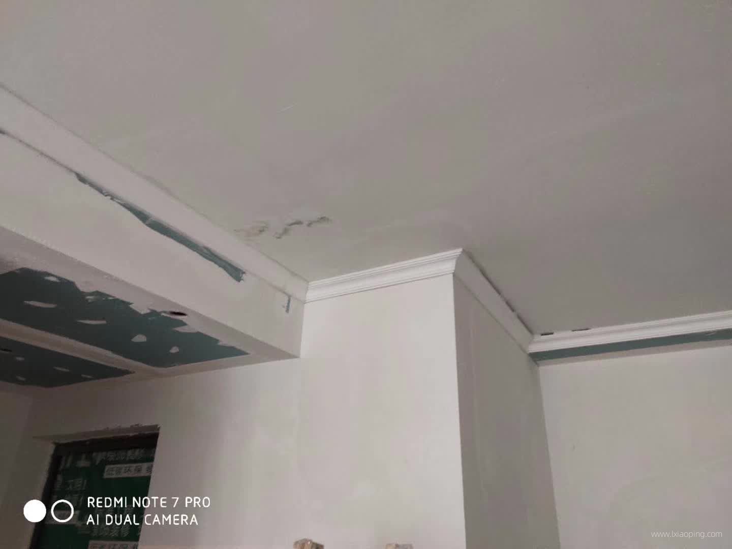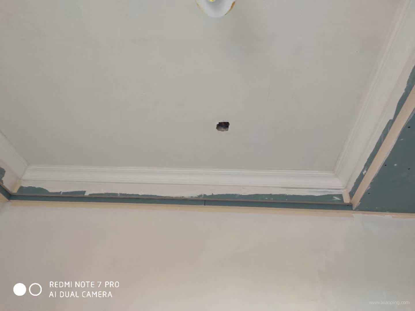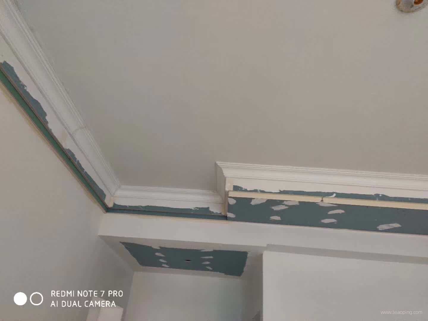油漆师傅正在对吊顶接缝处和定钉子的地方进行处理。